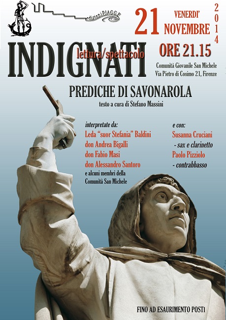 E’ in vendita in libreria la riedizione ampliata di Indignati, le prediche di Savonarola riscritte da Stefano Massini con introduzione di don Andrea Gallo, edizioni Piagge.