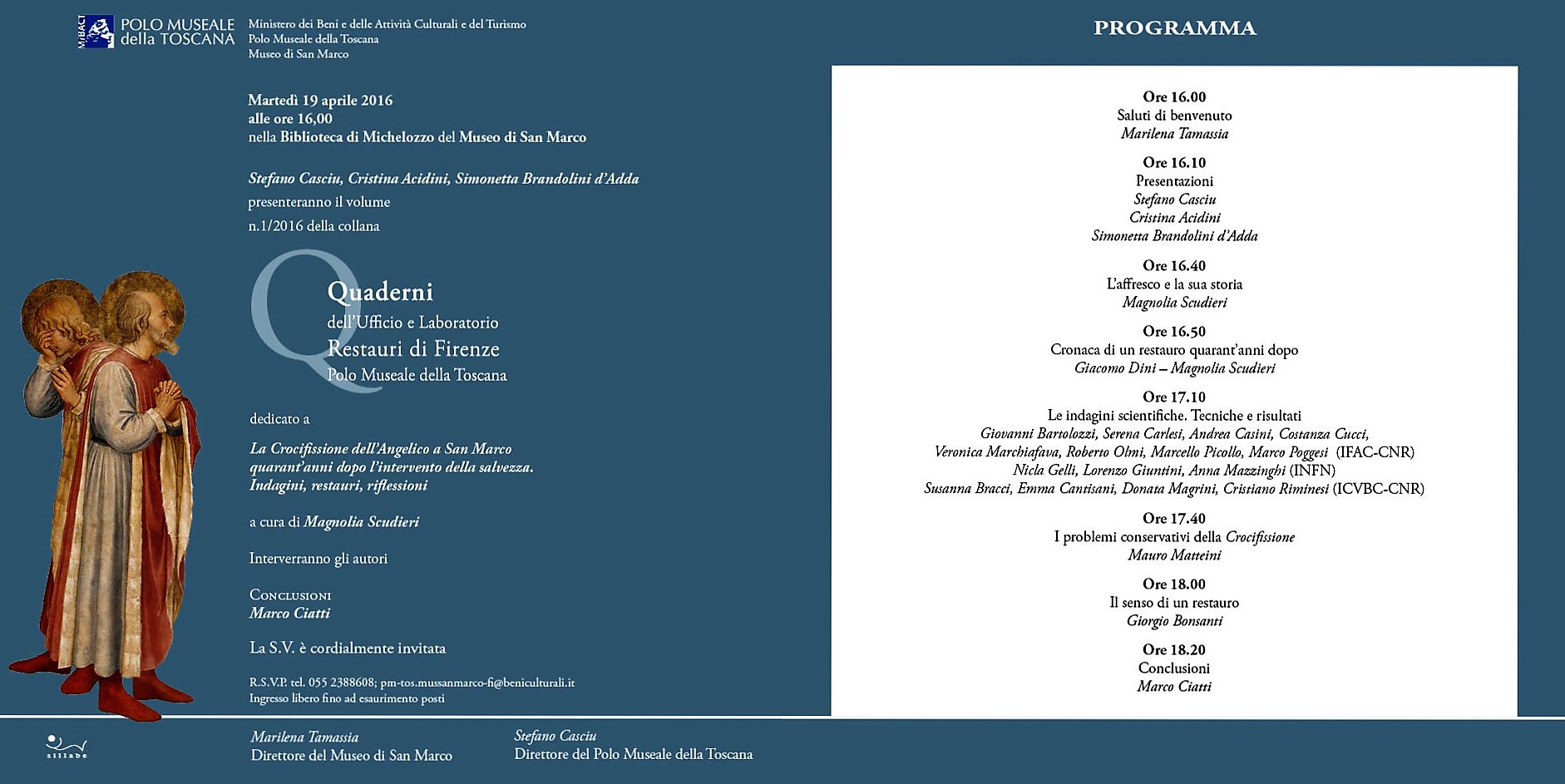 Curato da Magnolia Scudieri, il testo è edito da Sillabe come Quaderno n. 1/2016 della Collana dell’Ufficio e Laboratorio Restauri del Polo Museale della Toscana (anteprima Sommario).