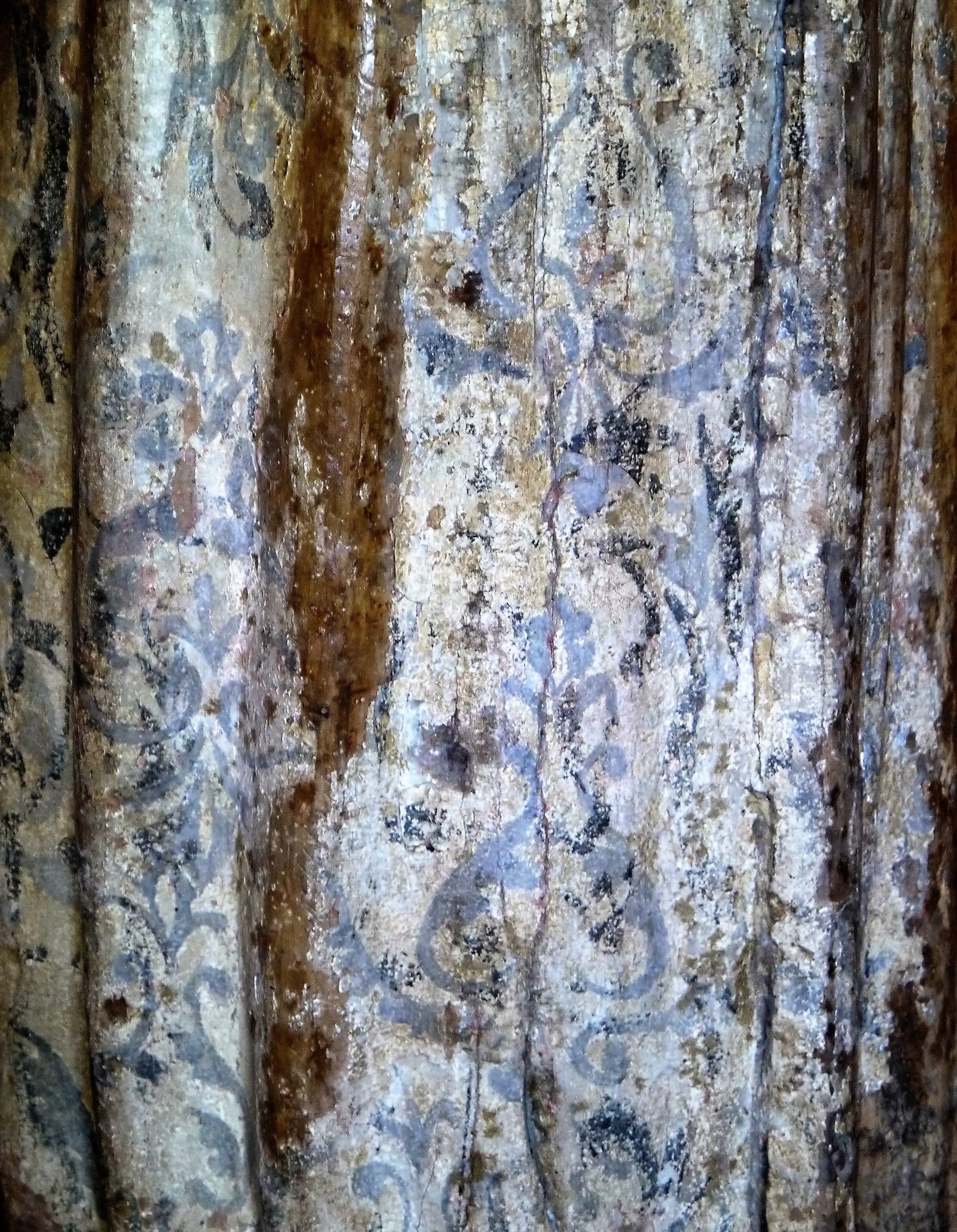 La testa girata da un lato, le braccia e le mani (monche) dall’altro, un gesto enigmatico quasi di danza che percepiamo anomalo e incompiuto, se non ipotizzando la presenza, in origine, di qualcos’altro tenuto tra le mani. Una croce, di sicuro.