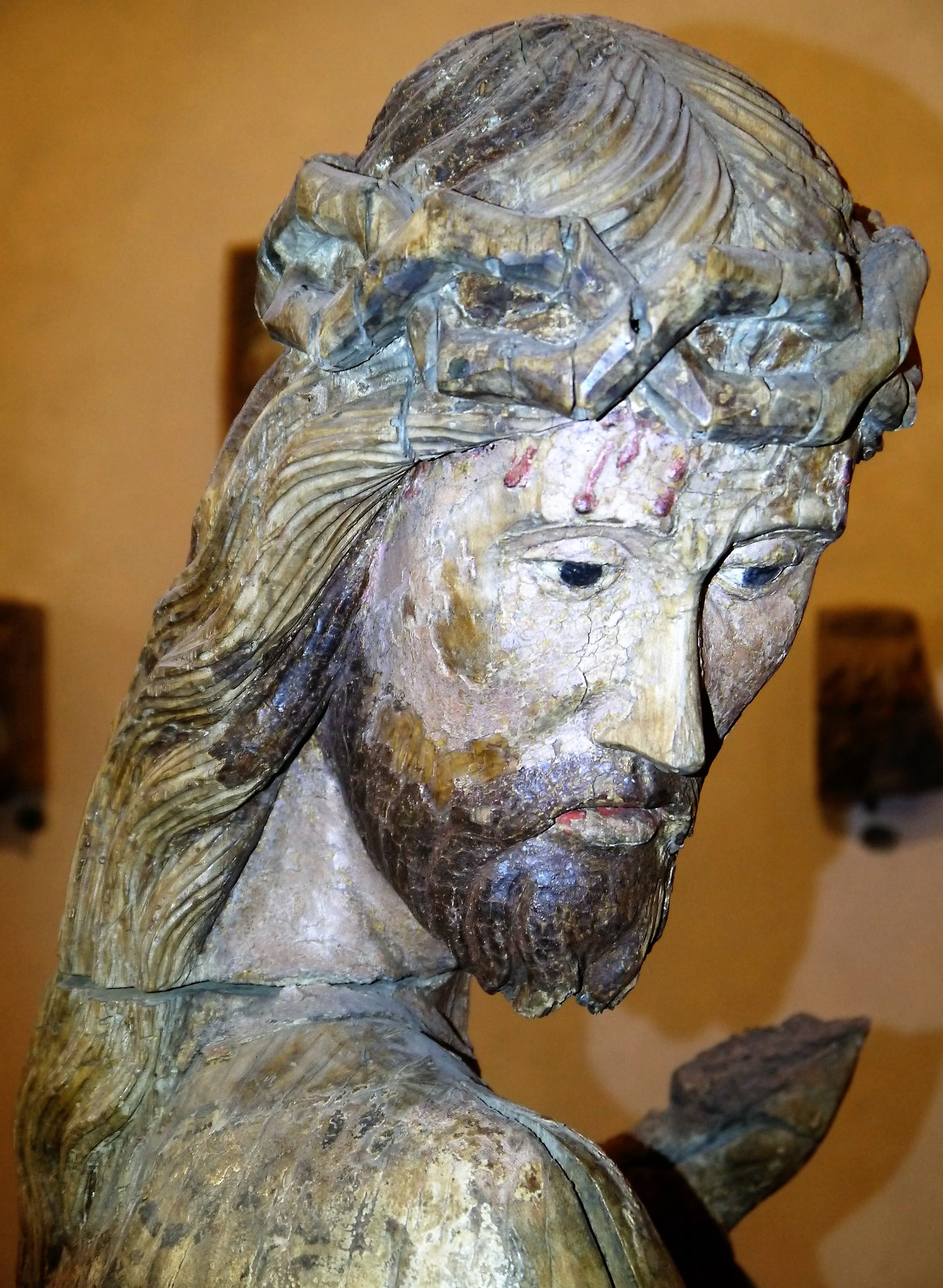 Se la scheda catalogo del 1996 ipotizzava un artista toscano del ’300, quella del 2006 di Monica Bietti, basandosi sulla migliore leggibilità di modellato e colore dopo il restauro, propone di spostare l’esecuzione verso il ’400, “datazione compatibile anche con il realismo espressivo del pur martoriato volto di Cristo”, e di attribuire la scultura ad “un grande scultore” di cultura senese, forse lo stesso Francesco Valdambrino, in una fase giovanile, o “un suo prossimo e altrettanto grande collaboratore”. Più prudentemente, l’intestazione della stessa scheda propone “Scultore senese-lucchese, fine secolo XIV-inizio XV”. Anche Marilena Tamassia, direttore del Museo di San Marco, mi ha confermato oralmente la riferibilità ad una cultura artistica della Toscana centrale, non fiorentina. La corona di spine, d’altra parte, pesante e dalle maglie regolari, richiamerebbe piuttosto esempi del nord Europa.