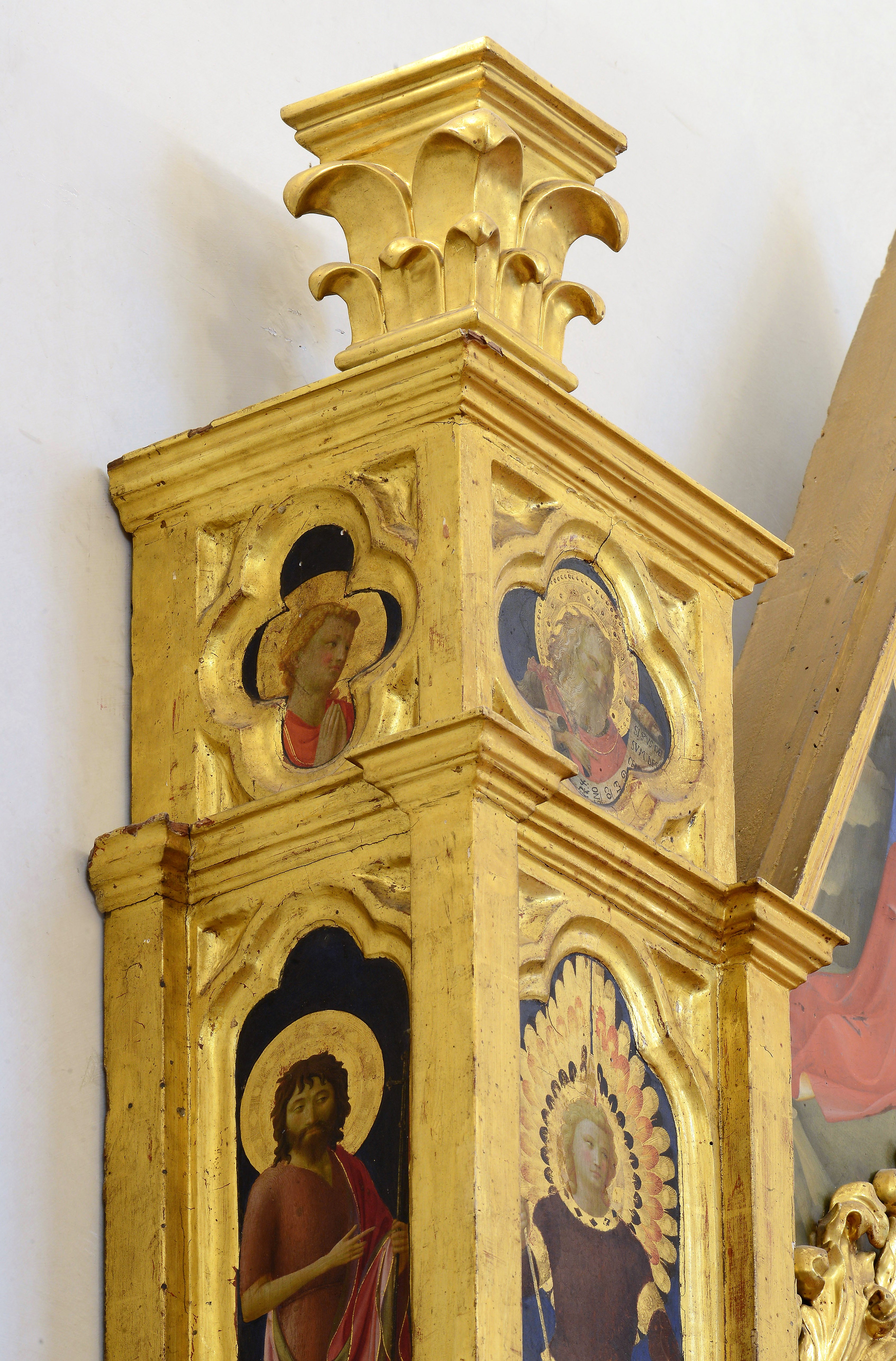 La sua struttura, predisposta per Lorenzo Monaco, che lasciò incompiuta l’opera, era esemplata probabilmente su quella del Polittico dipinto da Gherardo Starnina per l’altare maggiore della Certosa del Galluzzo, su commissione del Cardinale Niccolò Acciaioli.