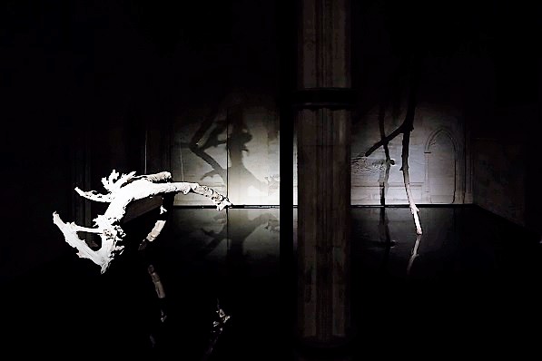 Quando lo spettatore entra nella vecchia sacrestia del Collège des Bernardins, è immerso nel buio e nel silenzio. Il suolo ricoperto d’acqua è appena infranto dall’infinito movimento dei due alberi morti. Un invito alla contemplazione e alla meditazione.