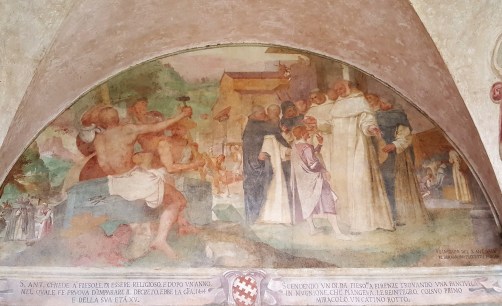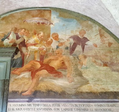 Prima di tutto, la ricostruzione del convento di San Marco, finanziata da Cosimo de’ Medici su richiesta di papa Eugenio IV. Una vicenda in cui il radicale anelito alla povertà dell’Osservanza, a contatto con la ricchezza e il potere mediceo, fu messo a dura prova. Da qui i due atteggiamenti, in apparente contrasto, di Beato Angelico e di Antonino, con il primo che preferì l’ascetica spiritualità del conventino di Fiesole, mentre il secondo, pur coltivando una rigida povertà personale, rimase in città a confrontarsi con la società mercantile, come priore di San Marco e Vicario dell’Osservanza.