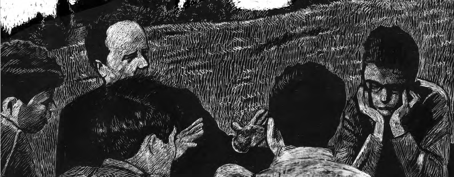 Le illustrazioni in copertina e a fine articolo sono di Simone Massi e sono tratte dal libro Il maestro, 2017.