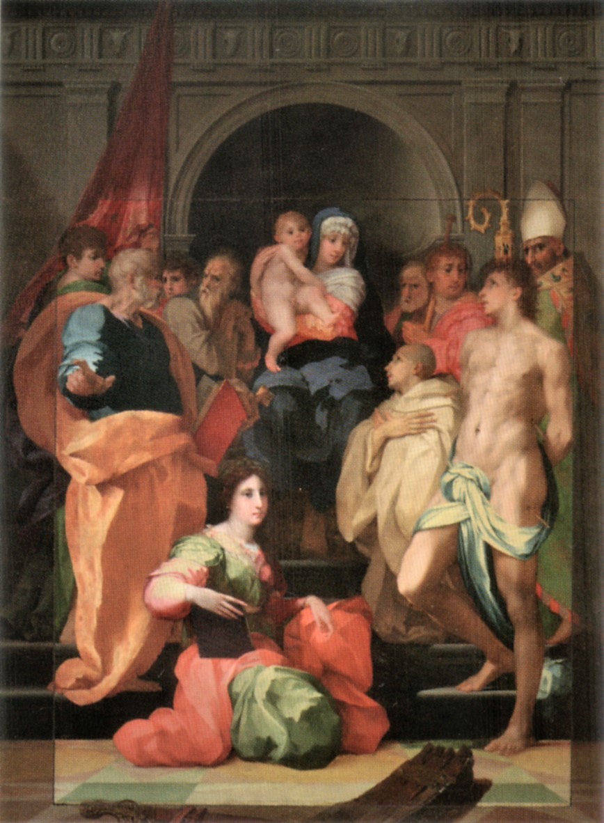 Gli anni 1509-12 segnano l’apice della carriera artistica di Fra Bartolomeo, che lavora in collaborazione con Mariotto Albertinelli (ma la “compagnia” non implica che l’esecuzione delle opere sia a due mani, ma che in comune sia, piuttosto, l’organizzazione delle commissioni e la gestione dei proventi). Sono gli anni della “serie spettacolare” di sacre conversazioni. Esemplari le due pale realizzate, a distanza di un anno, per il secondo altare a sinistra nella basilica di San Marco, in cui, fa notare la Padovani, è evidente l’evoluzione da uno stile più pacato (Sposalizio di Santa Caterina, 1511) ad una crescente complessità e drammatizzazione (Pala Pitti, 1512, che sostituì lo Sposalizio, inviato in Francia). Secondo la studiosa, la Pala Pitti di Fra Bartolomeo è tra le fonti di ispirazione per la Pala Dei di Rosso Fiorentino (1522), che, in Santo Spirito, sostituì a sua volta l’incompiuta Madonna del Baldacchino di Raffaello. Un gioco di rapporti, quello tra Fra Bartolomeo, Raffaello e il Rosso, che può essere definito “un cerchio straordinario di connessioni e di sviluppi nella Firenze del secondo decennio del ‘500”.