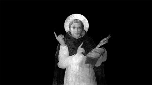 Sempre nel 2011, fatmi trasforma una lunetta dell’Angelico in cui è ritratto San Pietro da Verona che esorta al silenzio, in una straniante meditazione sul concetto di martirio. San Pietro da Verona, noto anche come San Pietro Martire, era un predicatore dell’ordine dei domenicani, strenuo nemico dell’eresia, soprattutto quella catara. Così Jacopo da Varagine racconta l’agguato in cui perse tragicamente la vita nel tragitto tra Como e Milano: