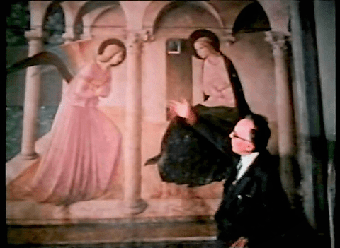 Immagini rare e preziose, dai colori segnati dal tempo, delle celle e degli affreschi del Museo di San Marco, prima dell’esemplare restauro condotto da Dino Dini tra il 1975 e il 1983. Con un La Pira quasi settantenne, cicerone d’eccezione, sottratto agli impegni internazionali per la pace di quegli anni, a illustrare l’incomparabile Annunciazione: “vertice spirituale” al centro del dormitorio del convento.