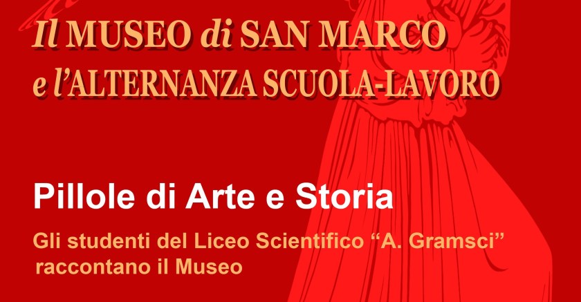 Fra pochi giorni, dal 4 al 9 giugno, in orario 8.30-13.30, i visitatori del Museo di San Marco saranno accolti dagli alunni della classe IIIA del Liceo Scientifico Statale A. Gramsci di Firenze, impegnati in un’attività di Alternanza scuola-lavoro.