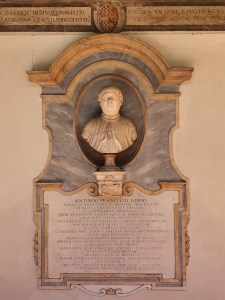 Il visitatore che all’interno del Chiostro di Sant’Antonino decidesse di prestare attenzione alle lapidi funerarie, troverà poco dopo l’ingresso, sulla parete sinistra, il monumento funebre di Anton Francesco Gori (1691 – 1757).