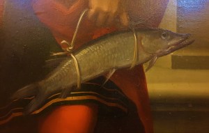 La prima immagine di pesce che incontriamo nel nostro itinerario, si trova nel Chiostro di Sant’Antonino, accanto all’ingresso del Museo, subito a destra, sulla porta che dà accesso alla nuova Sala del Beato Angelico. Si tratta di una delle lunette affrescate nel Seicento, con le scene della vita e dei miracoli del Santo priore di San Marco e arcivescovo di Firenze. Diversi artisti hanno contribuito al completamento del ciclo e la loro opera veniva sovvenzionata, di volta in volta, con le offerte lasciate ai frati dalle famiglie che intendevano seppellire i loro cari nel chiostro del Convento. A questa impresa attesero, tra gli altri, Bernardino Poccetti, Alessandro Tiarini, Cecco Bravo, Giovan Battista Vanni.