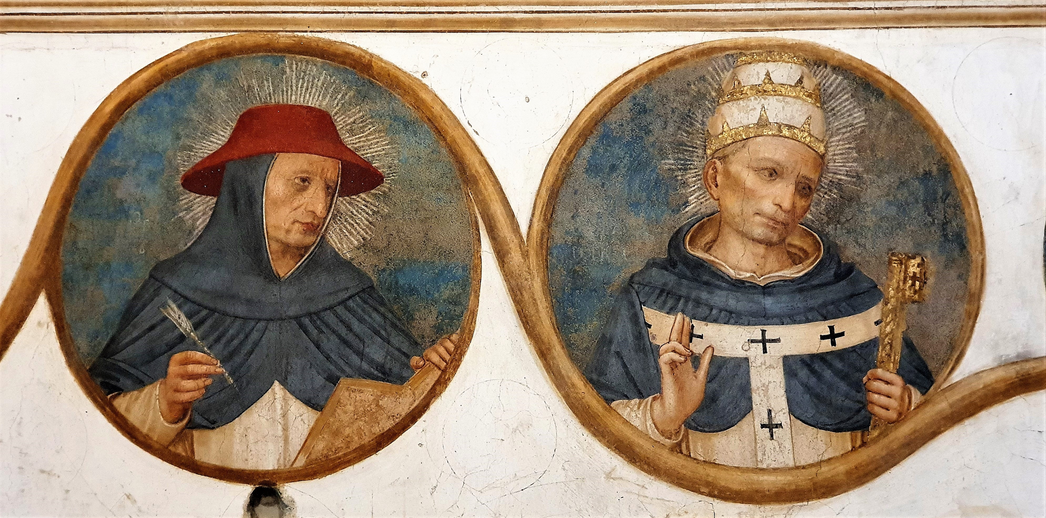 Abbiamo altrove narrato come i frati Predicatori del Convento di Trevigi (Treviso), un secolo innanzi (nel Trecento), avessero fatto dipingere da Tommaso da Modena quella galleria (di illustri domenicani) nel Capitolo di San Niccolò. I religiosi del Convento di San Marco bramando averne alcun saggio (qualche parte simile), si procurarono copia di quella di Trevigi, per quanto afferma Padre Domenico M. Federici nelle primo volume di Memorie Trevigiane (Venezia, 1803).