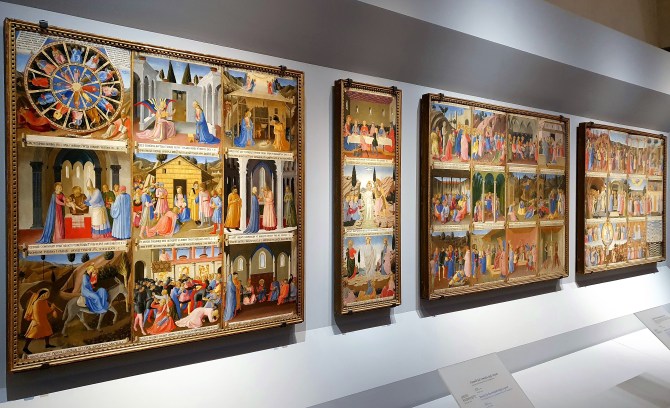 Ci gode l’animo di potere far meglio conoscere queste mirabili ed ingenue fatture (opere di pura semplicità) dell’Angelico, così mal note o affatto (del tutto) ignorate dagli storici delle Arti. In esse non prese a narrare la leggenda della Beata Vergine, come scrive il chiarissimo Montalembert (Charles-René Montalembert, politico e storico francese del XIX sec.) ma sì la vita di Gesù Cristo; solo aggiungendovi della prima quei fatti che necessariamente congiungono la vita della Madre a quella del Figlio; e sono il più delle volte tolte (tratte) da quelle trentacinque storie di Gesù Cristo che si dissero dal medesimo colorite nei portelli (negli sportelli) dell’armadio della santissima Annunziata; e in un fuor d’opera (in aggiunta) fece alcun (qualche ) Santo domenicano, secondo la divozione del religioso che abitava la cella.