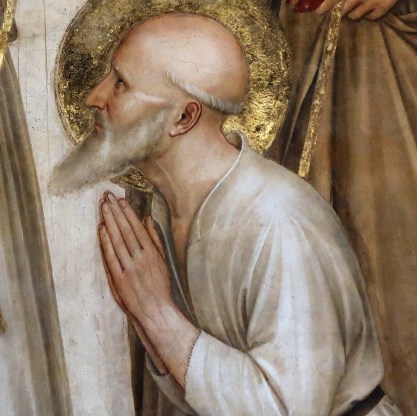 In quest’opera dell’Angelico già appariscono i segni di quelli avanzamenti che l’Arte avea fatti in Firenze, per i belli andari dei panni (i bei panneggi) e delle arie che diede a quelle figure, e segnatamente per certa grandezza nella maniera, e per rilievo e forza maggiore nel disegno. Non così mi appagano le estremità (mani e piedi), nelle quali per certa sua negligenza non di rado è scorretto. Non pertanto (tuttavia), sempre che volle tolse eziandio (anche) quella menda (difetto).