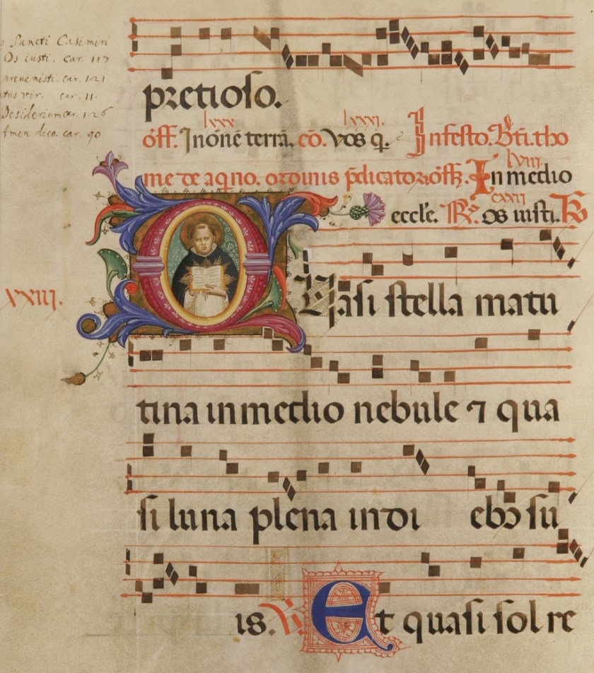Padre Michael Dunleavy, esperto di liturgia domenicana, durante la conferenza-concerto The sound of Silence tenutasi il 20 febbraio 2015 per la riapertura della Biblioteca michelozziana, chiarì che la liturgia, “la preghiera in musica”, è fondamentale nell’ordine domenicano. E fu emozionante sentire prendere vita, nella voce dei frati cantori, le antiche note segnate sui tetragrammi dei codici miniati anche dall’Angelico. Testimonianza sonora e non più solo visiva della fusione profonda tra arte e spiritualità.