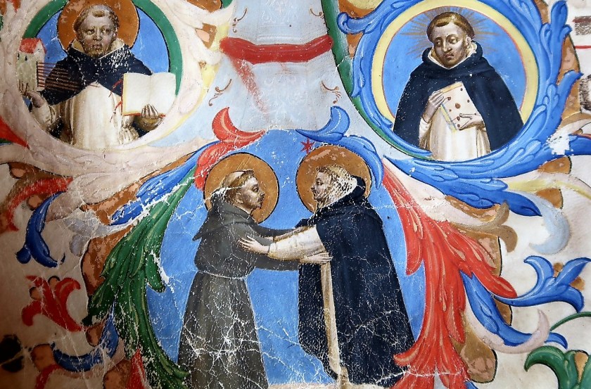 In occasione del Dantedì (25 Marzo), che quest’anno si arricchisce delle celebrazioni per il settecentenario della morte del Sommo Poeta, questa scena ci ha suggerito un richiamo ai due canti del Paradiso in cui magistralmente si glorificano i due santi: Francesco, fondatore dell’Ordine dei frati minori nel canto XI, e Domenico, fondatore dell’ Ordine dei frati predicatori, nel canto XII.