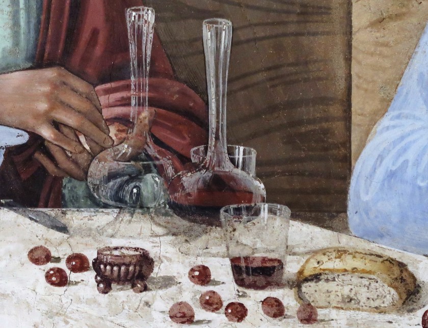 Va ricordato che il cenacolo di San Marco, non a caso adiacente alla foresteria, era destinato al consumo dei pasti degli ospiti, anche laici, presenti nel convento. Possiamo ipotizzare, quindi, da parte del pittore, oltre ad un intento didascalico, anche qualche concessione a virtuosismi pittorici come quello della trasparenza dei vetri.
