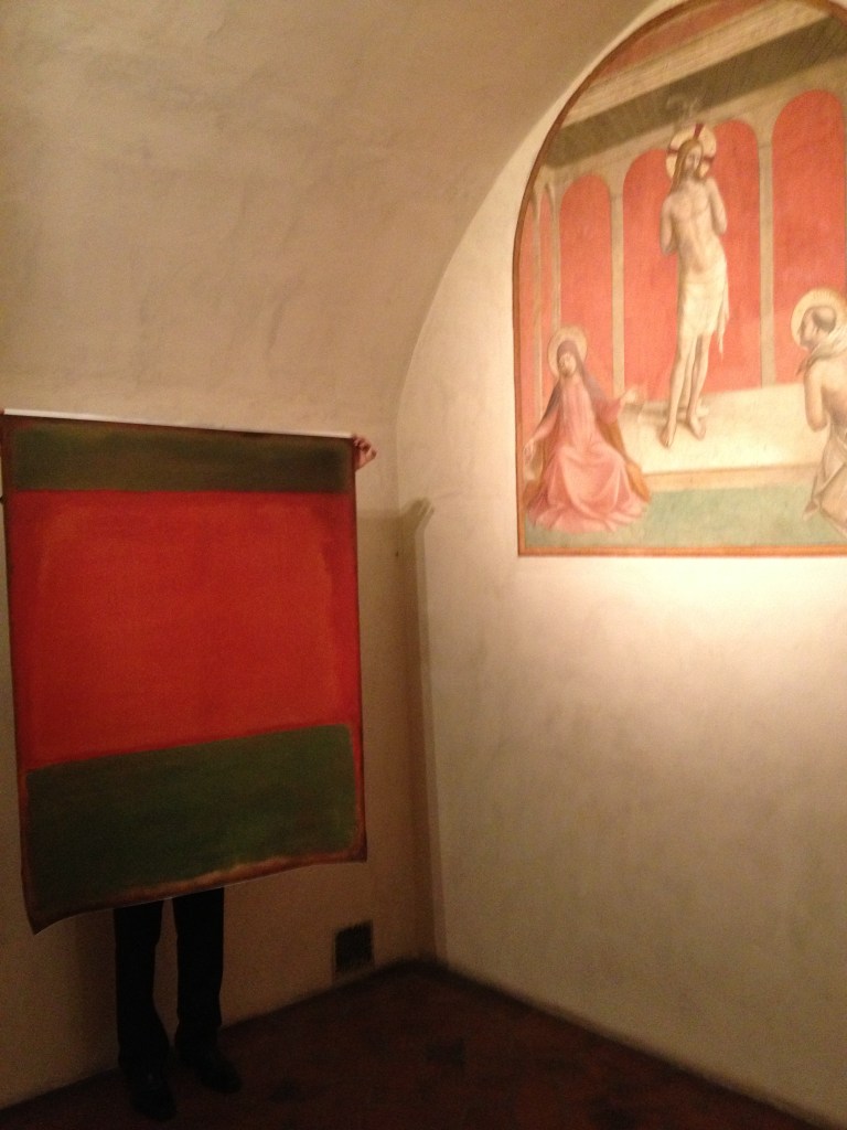 «Le poesie, i racconti, i romanzi e le opere teatrali – spiega Cianchi citando il critico letterario Harold Bloom, autore del famoso Canone Occidentale – nascono in risposta a poesie, racconti, romanzi e opere teatrali precedenti, e quella risposta dipende da atti di lettura e interpretazione compiuti dagli scrittori successivi». Lo stesso si può dire della pittura. Il caso di Rothko è emblematico, in tal senso. Senza scomodare le teorie della ricezione, secondo cui «gli atti di lettura e interpretazione» di un testo, di un’opera d’arte da parte di un lettore ne rivitalizzano il senso, si può dire che il lettore-artista Rothko, capace di starsene ore in contemplazione di un dipinto, aveva riconosciuto in Beato Angelico un maestro del passato capace di porgli domande fondamentali a cui cercò per tutta la vita di rispondere. La sua ricezione degli affreschi dell’Angelico a San Marco, la soggettivazione della poetica del frate pittore, è di una profondità difficilmente raggiunta da altri artisti del Novecento.