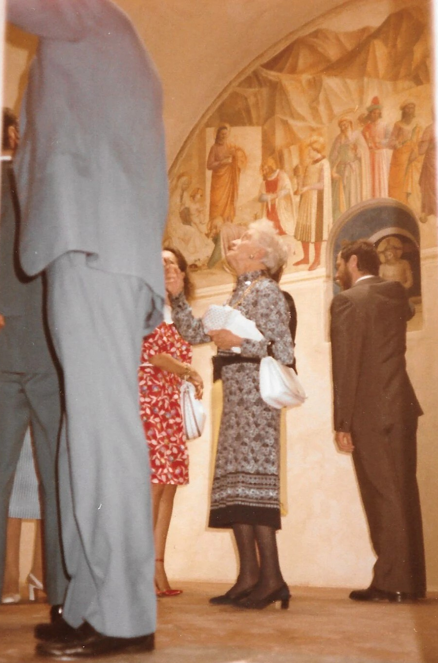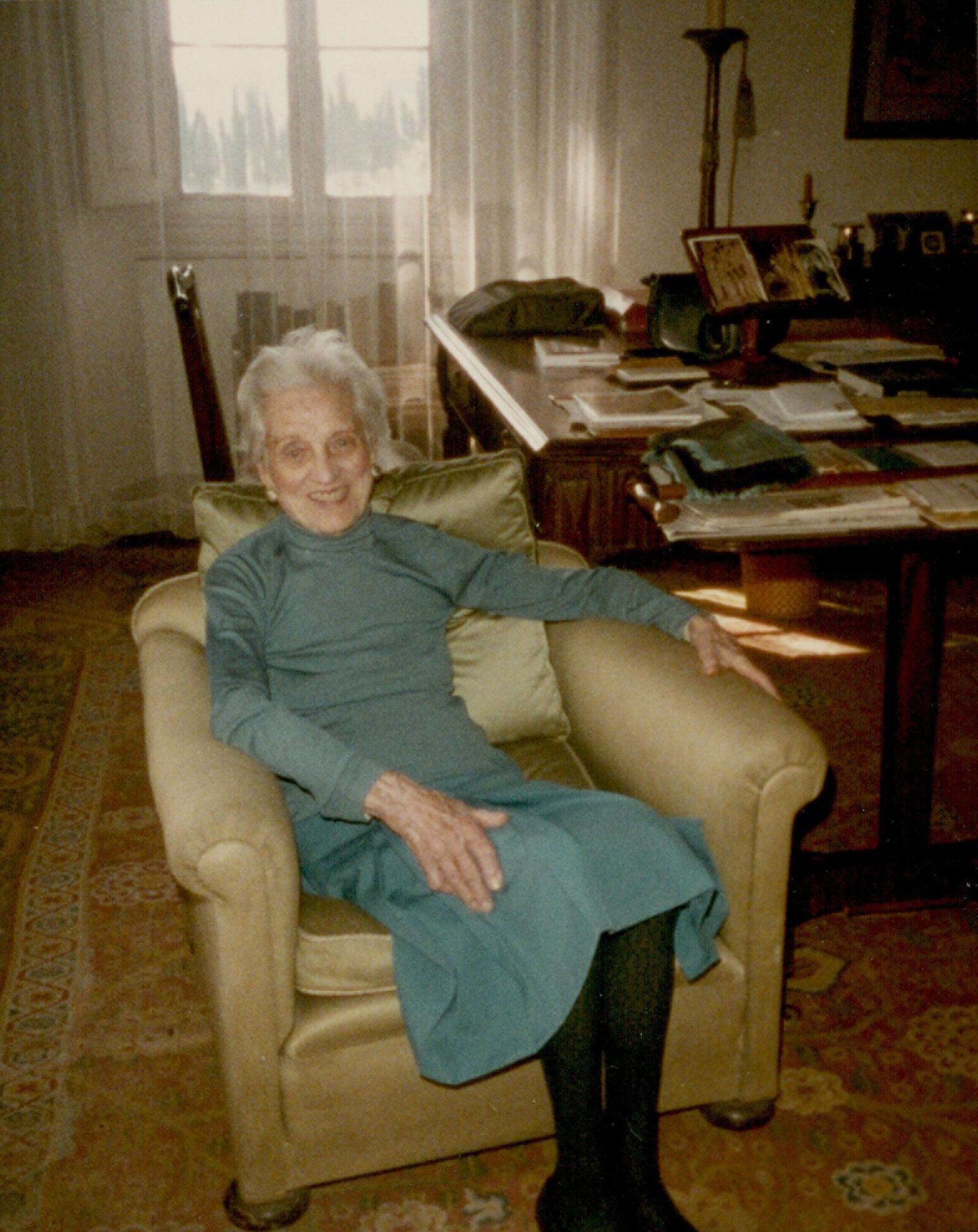 Sulle colline sopra Firenze, dove la si poteva vedere passeggiare col suo inseparabile cane o scorrazzare sulla sua amata 850 coupé, si era radicata l’amicizia con Bernard Berenson e soprattutto con la sua ultima compagna e collaboratrice Nicky Mariano. Il noto connoisseur da anni aveva stabilito la sua prestigiosa residenza a Villa I Tatti in via di Vincigliata, raccogliendo attorno a sé una corte organizzata di persone dedite allo studio dell’arte. Nato in Lituania da famiglia ebrea, emigrata poi in New England, si era stabilito a Firenze dal 1888 dove muore nel 1959. Ormai celebre conoscitore e collezionista d’arte, nella sua Villa, lasciata all’Harvard University alla sua morte, aveva creato un’oasi di civiltà, rimasta tale anche negli anni più bui per l’Italia e da cui non si era voluto mai troppo allontanare, preferendo nascondersi nelle vicinanze, quando fu necessario.