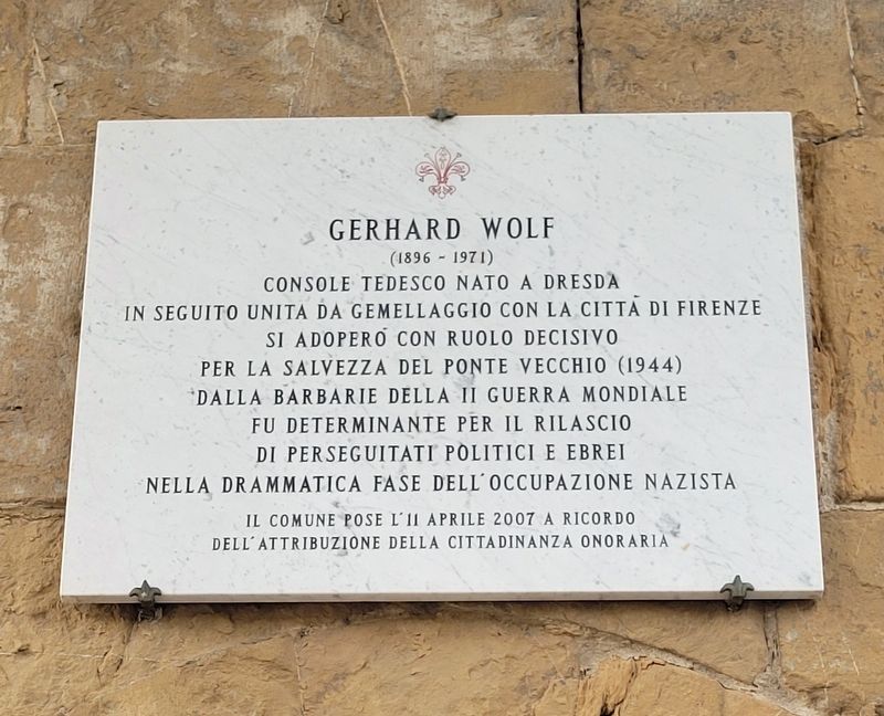 Riccardo Michelucci, “GERHARD WOLF (1896 – 1971) il console tedesco a Firenze che durante l’occupazione nazista salvò i perseguitati e salvaguardò il patrimonio culturale e artistico della città dalla distruzione”: https://it.gariwo.net/giusti/shoah-e-nazismo/gerhard-wolf-25546.html