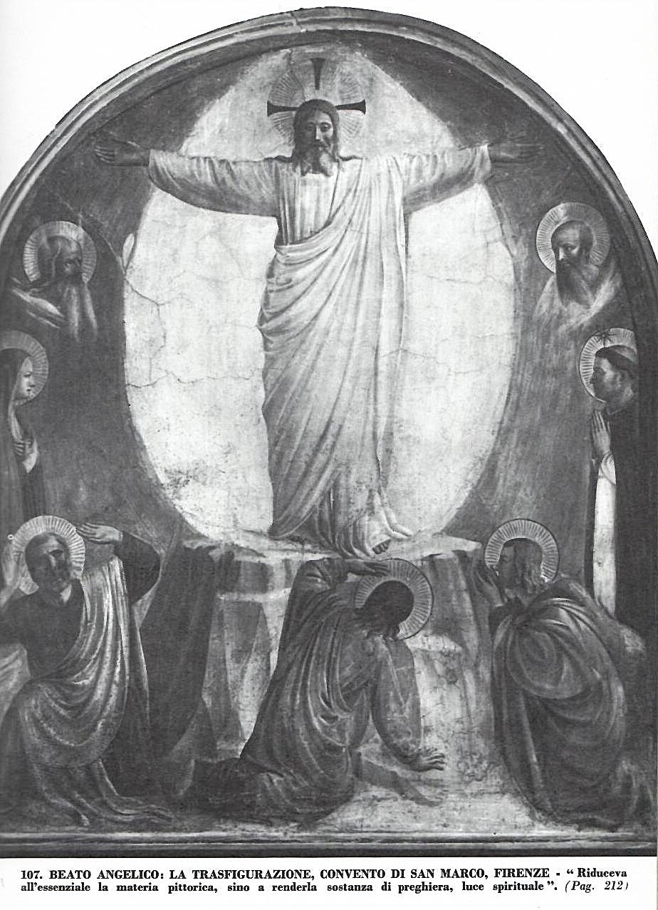 L’Angelico raggiunge la più alta suggestione mistica, non sfumando e idealizzando, ma attraverso forme piene, solide, corporee. Nell’Angelico si ha l’incontro, non più avvenuto nella storia dell’arte, del più forte realismo con la più alta spiritualità. Mediatrice di questo miracoloso incontro è la grazia dell’arte che quasi si confonde con la grazia della fede (Il Convento di San Marco e le pitture del Beato Angelico, 1948, p.13).