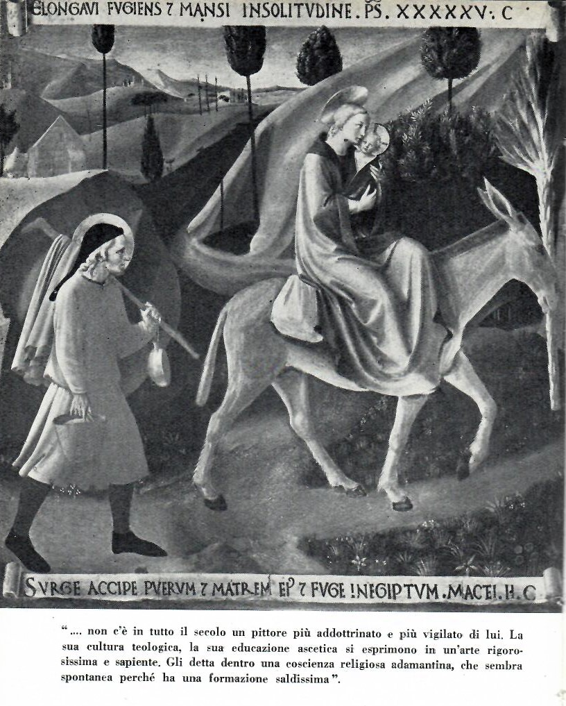 Non si arriva a capire l’arte così intensa e così sobria, così graziosa e nel tempo stesso così forte del Beato Angelico, senza pensare a qual fosse stata la sua formazione, non solo ascetica, ma anche teologica. L’assoluta coerenza stilistica sarà sorretta da una assoluta coerenza spirituale e, alla compostezza delle forme, all’armonia dei colori, corrisponderà la quadratura mentale e la delicatezza dell’anima religiosa. Tra gli artisti del primo Quattrocento, all’esordio dell’Umanesimo, il Beato Angelico si presenta (…) con una così ferma visione spirituale, che il suo naturalismo non correrà mai il rischio di smarrirsi in esteriorità piacevoli o in distrazioni decorative (p. 50).