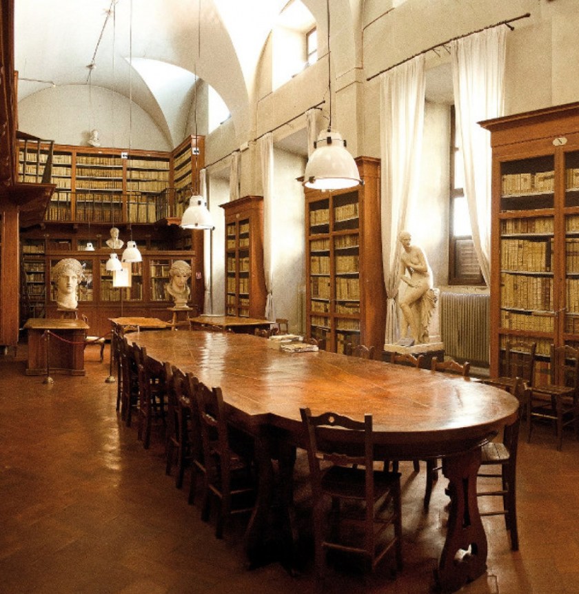 Dall’Inventario dei Mobili della Accademia redatto nel 1814, conservato nell’Archivio Storico della stessa, risulta che nel convento domenicano erano alloggiate le iniziali collezioni librarie dell’Accademia, incrementate dal 1807 dal bibliotecario, il poeta Giovanni Battista Niccolini (1782-1861), professore di Storia e Mitologia. Dopo il 1815, la biblioteca trovò sede nel vicino ex-convento di Santa Caterina, e nel 1853 fu spostata negli spazi attuali, accanto alla Galleria interna, attuale Galleria dell’Accademia, e alla sua Scuola di Musica e Declamazione istituita nel 1811, oggi Conservatorio Luigi Cherubini.