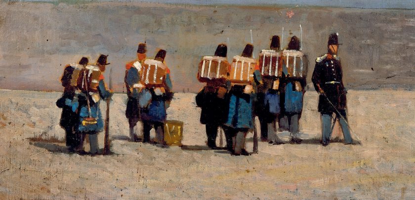 Fra il 1858 e il 1859, Fattori esordiva nel pieno cromatismo compositivo lampante e analitico della Macchia, con i Soldati francesi del ’59 mentre impostava il suo ultimo quadro di storia, la Maria Stuarda al Campo di Crookstone, datato 1861 (Firenze, Galleria d’Arte Moderna).