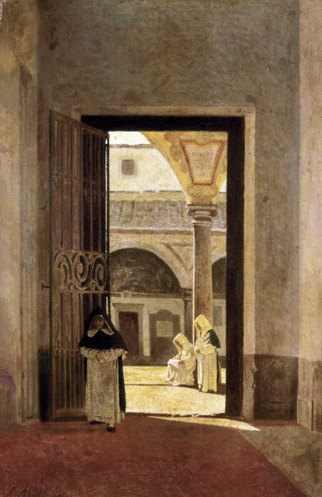 Scriveva ancora Martelli: «sempre tenace nelle sue ricerche, predilesse in città i chiostri e le chiese dei Domenicani (San Marco e Santa Maria Novella), giacché nel costume di quei monaci trovava il suo temine di confronto e la sua riprova e così trovò modo di eseguire diversi quadri coi loro costumi». Nel 1877, in un’altra Conferenza dal titolo Sull’arte, riaffermava le lunghe visite di Abbati ai «chiostri di Santa Maria Novella e di San Marco adattissimi alle sue investigazioni», e alla sua «indubbia potenza» pittorica.