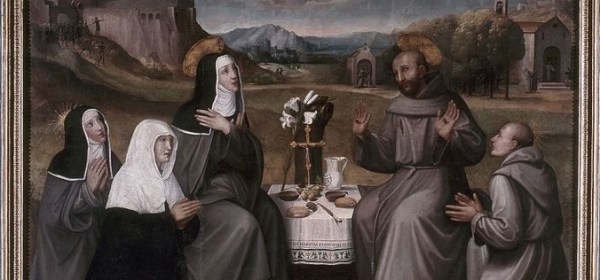 Che ci siano San Francesco e Santa Chiara attorno ad una piccola mensa imbandita, è palese. Per il resto, son più dubbi che certezze. Stiamo
